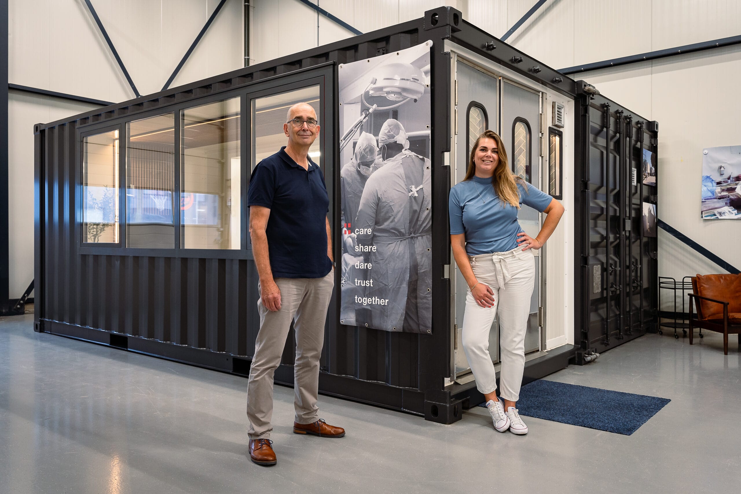 Voor de Hospitainer Foundation mocht ik aan de slag met verschillende visuele middelen die bijdragen aan hun zichtbaarheid en missie. Van fotografie die laat zien hoe hun mobiele medische voorzieningen wereldwijd worden ingezet, tot een overzichtelijke en frisse website in de nieuwe huisstijl, elk onderdeel is ontwikkeld om hun verhaal helder, professioneel en krachtig over te brengen.